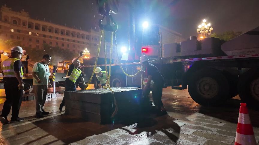 在中聯(lián)重科助力央視直播閱兵項(xiàng)目工作中,龍衛(wèi)國(左一)為設(shè)備保駕護(hù)航