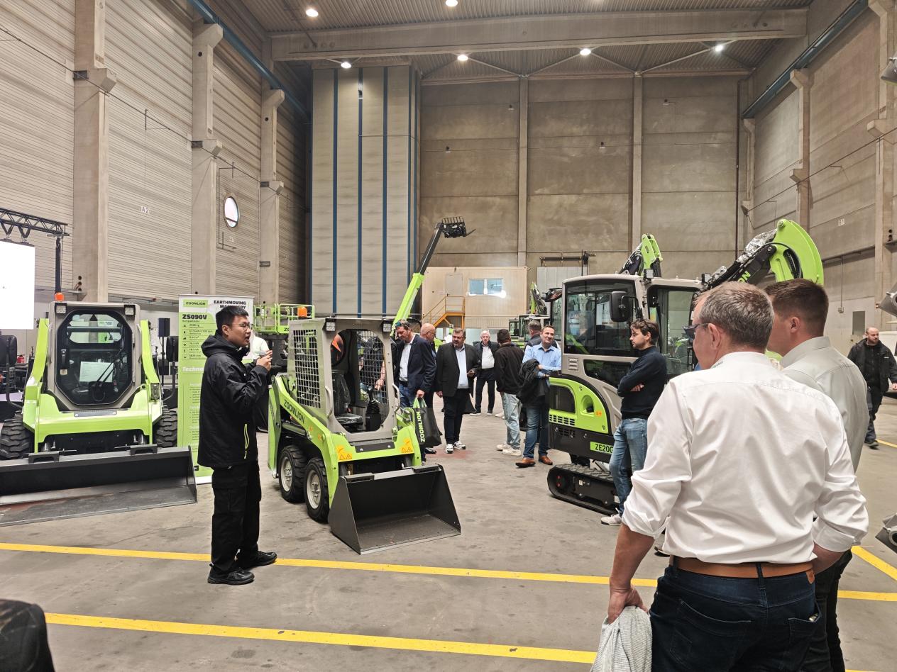 例如,明星產品之一的ZE55GU挖掘機采用“大功率發動機 + 電控主泵”組合,動力更強的同時油耗更低、效率更高,全敞開式機罩等讓日常保養省時省力;在歐洲城市工況作業條件下,該機型可通過工作裝置大角度偏擺、行走高低速自適應調節等功能,在狹小空間內靈活作業。ZTH4525R叉裝車具備強勁的起重能力和卓越的越野性能,其四輪驅動系統配備前后驅動橋及限滑差速器,確保在復雜地形中擁有出色的牽引力和機動性,并可選配工作平臺、物料斗、起重臂等附件,通過多功能適配滿足歐洲多樣化的施工需求。