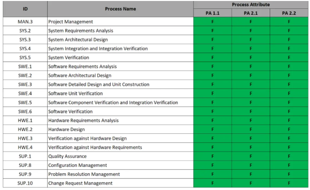 此次徐工以全部滿分(F)的卓越表現(xiàn),成功通過ASPICE 4.0 CL2級的19個過程認證,表明徐工在研發(fā)流程規(guī)范性、可靠性及風險管控能力等方面已達到國際行業(yè)先進水平。